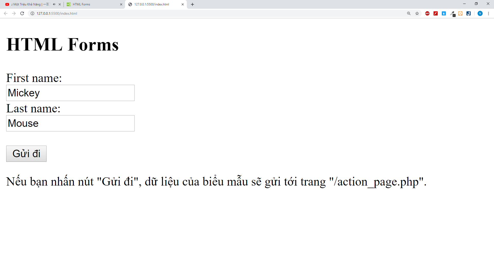 <p>Nếu bạn nhấn nút "Gửi đi", dữ liệu của biểu mẫu sẽ gửi tới trang "/action_page.php".</p>
