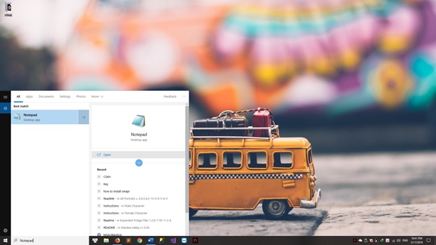 Mở nút Start ở góc dưới bên trái màn hình, gõ Notepad để tìm kiếm.