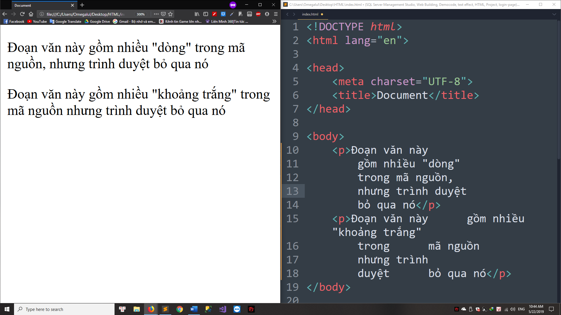 Lưu ý: Trình duyệt tự thêm một khoảng trắng (thêm lề) phía trước và sau một đoạn văn.