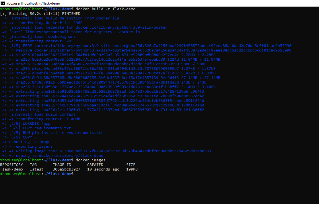 Lệnh trên sẽ Build một Docker Image với tên flask-demo từ thư mục hiện tại (dấu chấm).