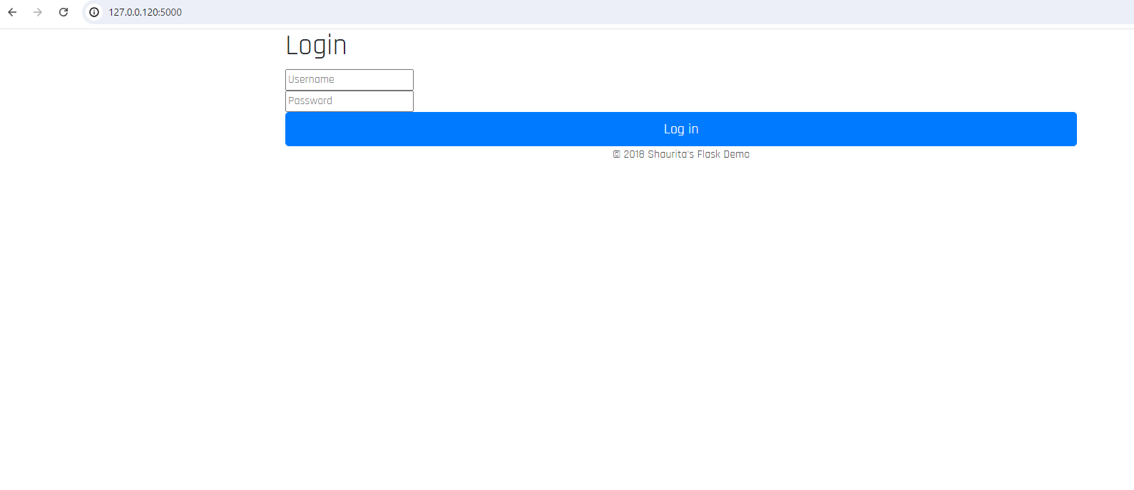 - Trên Google Chrome chúng ta truy cập 127.0.0.120:5000 như thiết lập trên và xem kết quả: