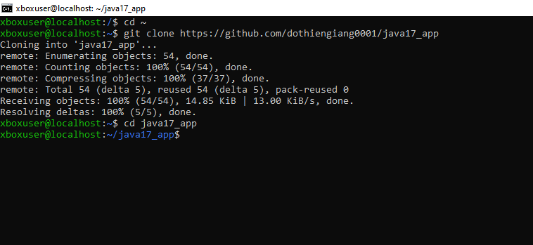cd ~ git clone https://github.com/dothiengiang0001/java17_app cd java17_app
