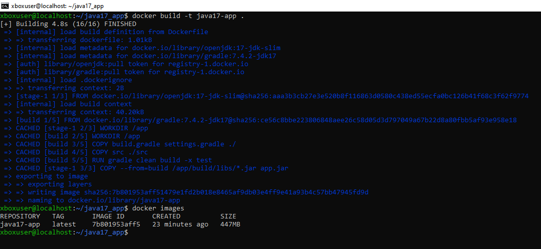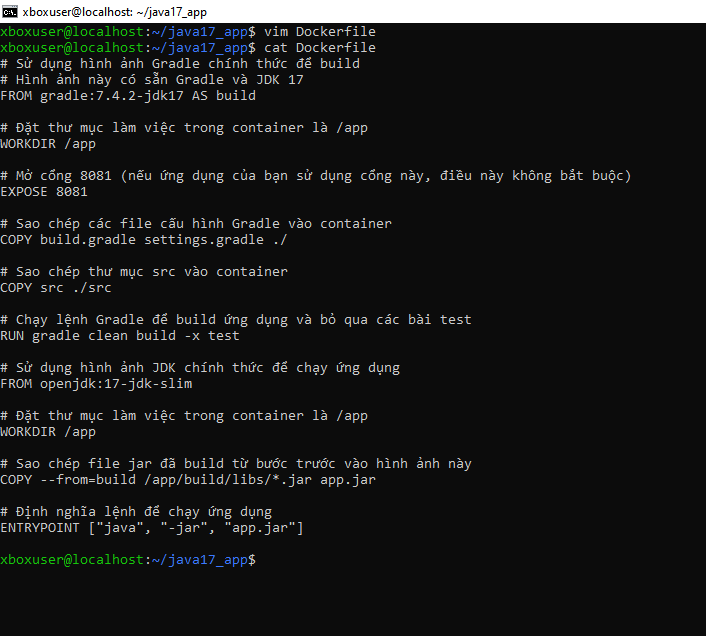 Lệnh trên sẽ Build một Docker Image với tên java17-app từ thư mục hiện tại (dấu chấm).