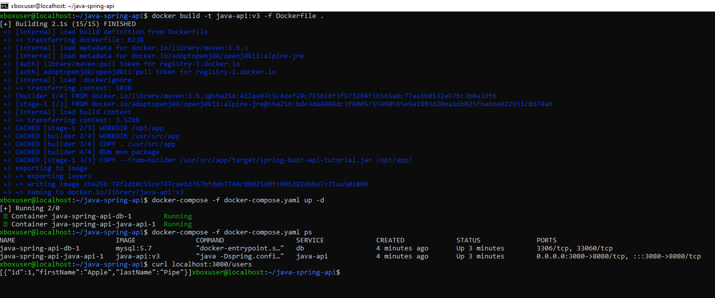 Trong quá trình triển khai, docker compose sẽ đóng gói và tạo ra Image tên là java-api:v4 như trong yêu cầu từ cấu hình: