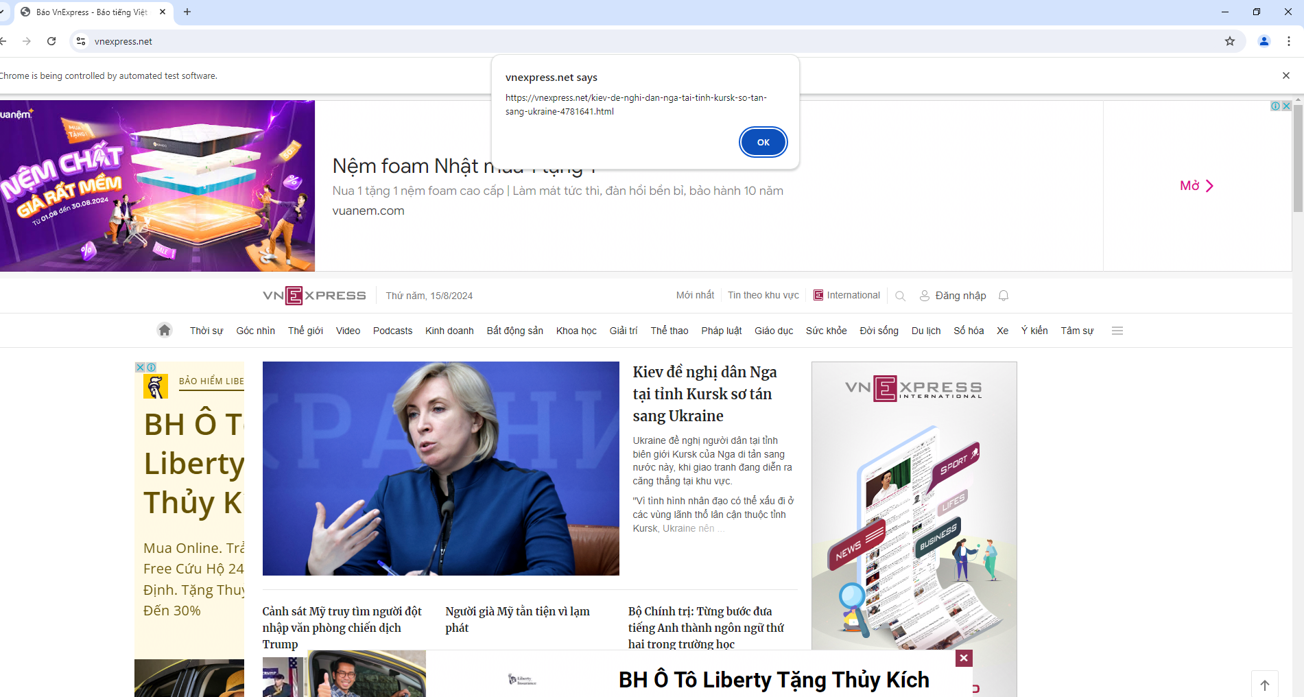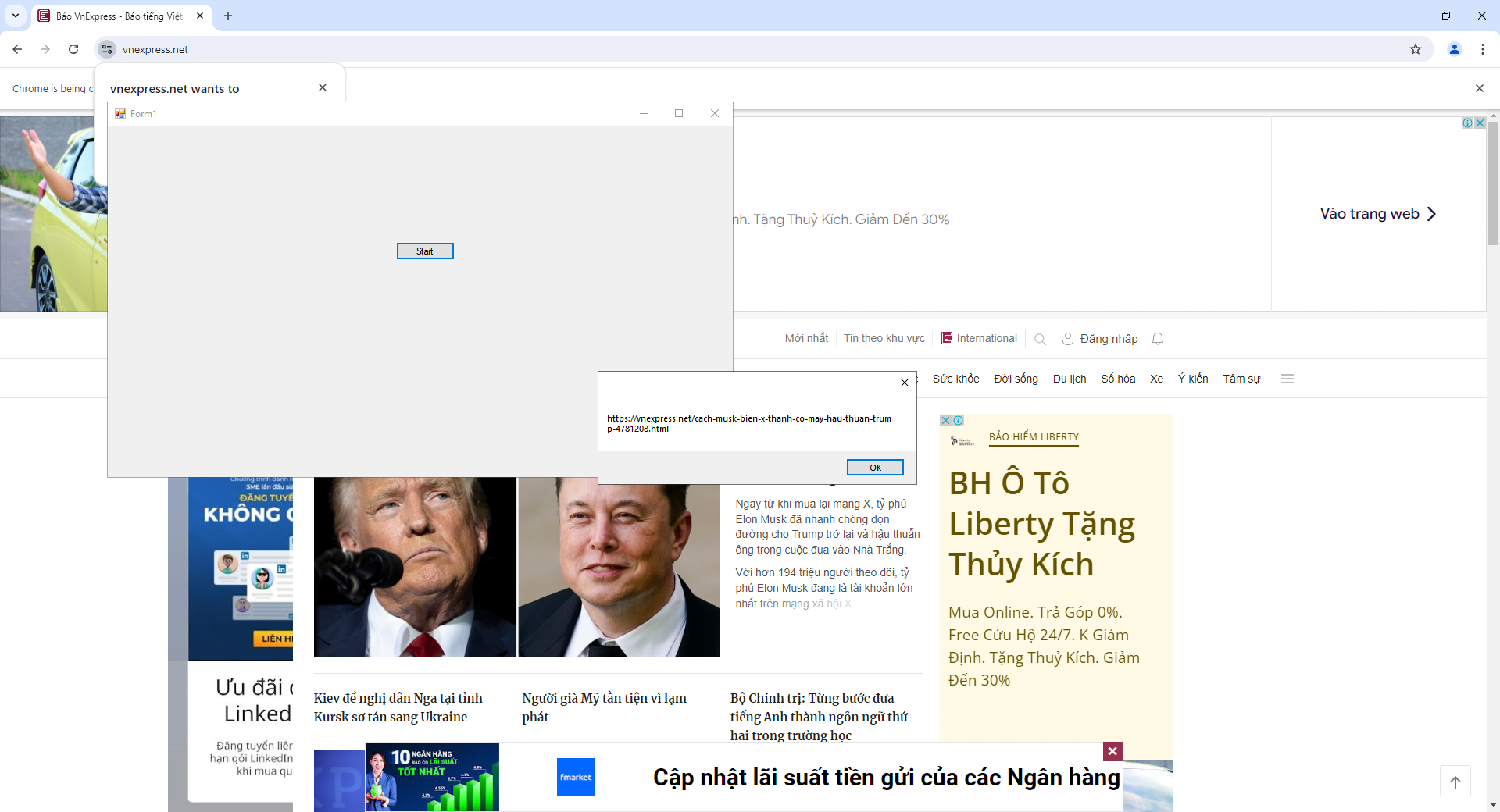 - Đoạn mã ví dụ cần thực thi lấy ra Href của một ClassName trong trang https://vnexpress.net/: