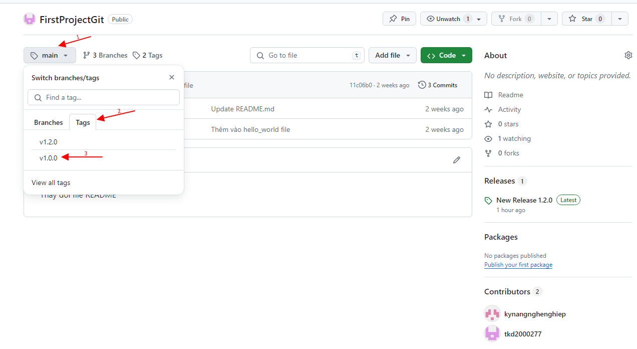 2. Tạo tag mới có tên v1.0.0 từ nhánh dev: