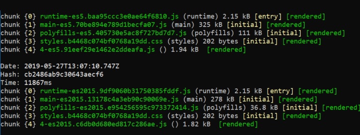 Hình ảnh trên chúng ta có thể thấy bundle size giảm đi đáng kể trong trường hợp ES2015 từ 9% đến 20%. Cuối cùng thì bundle size nghĩa là tối ưu hiệu năng. Vì thế Angular sẽ build thêm các file bổ sung với polyfills và chúng sẽ được thêm vào trong ứng dụng