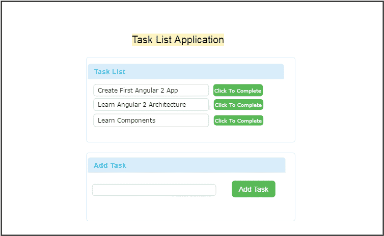 Xem xét ứng dụng Simple Task List ở trên. Ứng dụng hiển thị một danh sách các task và bên dưới chúng ta có tuỳ chọn thêm mới task.