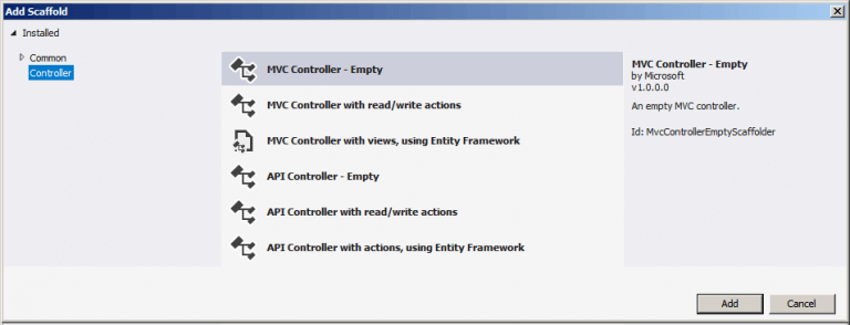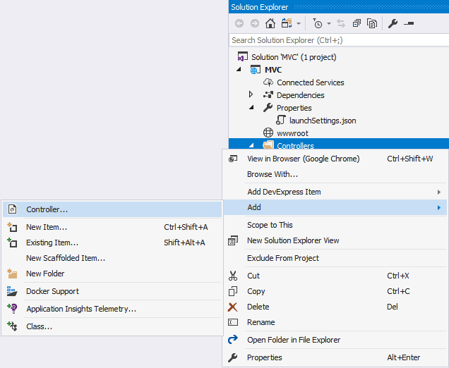 Controller không khác gì so với .NET Class thông thường. Chỉ có điều nó nằm trong thư mục Controllers là thư mục nằm trong thư mục gốc của ứng dụng. Bạn có thể tạo mới controller bằng cách chọn thư mục Controllers và chuột phải chọn Add-> Controller.