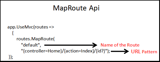 Trong ví dụ trên, MapRoute tạo một route đơn lẻ nó có tên là default và với URL Pattern của route là {controller=Home}/{action=Index}/{id?}