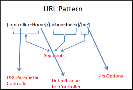 Nó có 3 thành phần và phần thứ 3 có tên là id, nó không bắt buộc. Phần id này có thể được gán như một tham số vào Controller action method.