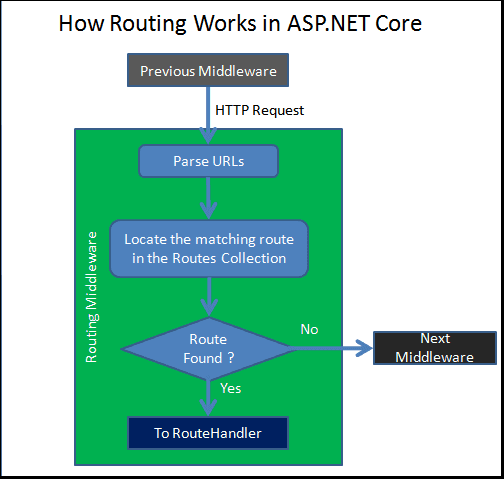 Mô hình dưới đây mô tả cách làm việc của cơ chế Routing trong ASP.NET Core: