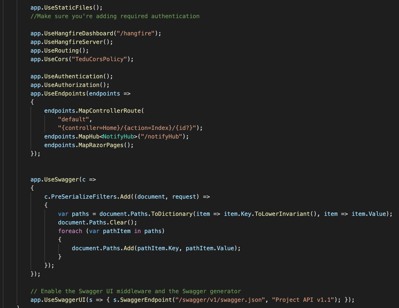 - Đổi cách kiểm tra điều kiện theo tên môi trường cũ env.IsDevelopment() thành env.EnvironmentName == Environments.Development