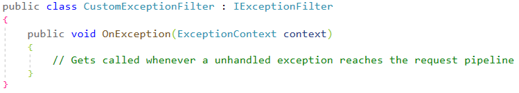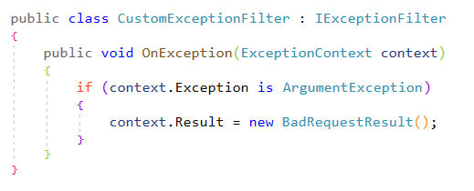 .NET đưa ra một cách xử lý bắt lỗi toàn bộ ứng dụng ở 1 chỗ trong Request Pipeline. Việc cần làm là add một class kế thừa từ IExceptionFilter: