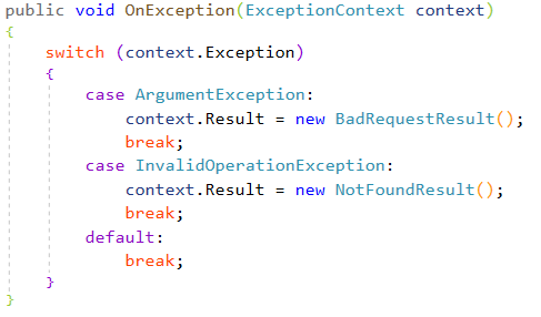 Và cũng có thể bổ sung việc bắt lỗi vừa ném ra trong OnException method: