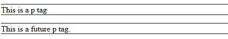 Nếu chúng ta click trên thẻ p nó sẽ alert ra một message (thẻ p được click từ hàm bind) v à sau đó (thẻ p được click từ function live). Bây giờ chúng ta thêm 1 thẻ <p> trong thẻ body nhưng sau function bind(), về cơ bản thì thẻ <p> sẽ được thêm vào thẻ body trong quá trình runtime.