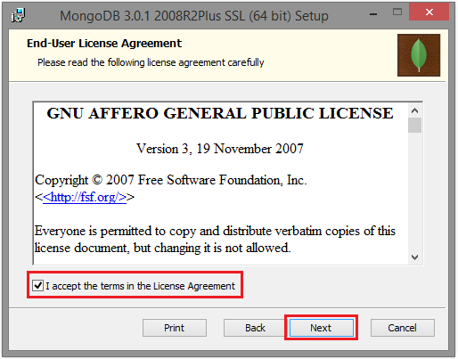 Chỉ cần nhấp đúp vào tập tin cài đặt MongoDB và làm theo các bước sau để cài đặt nó.