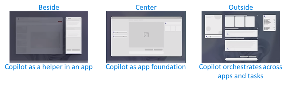Center: Copilot được tích hợp trực tiếp vào giao diện trung tâm, đóng vai trò là nền tảng chính (app foundation) của ứng dụng.