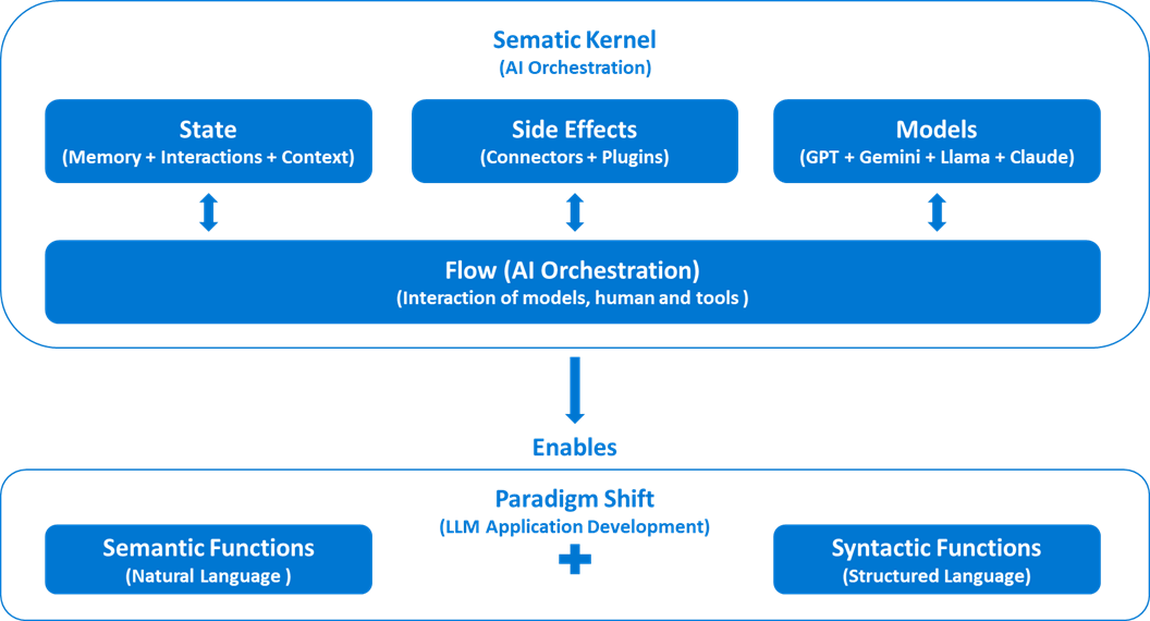 Semantic Kernel đại diện cho một mô hình phát triển ứng dụng hoàn toàn mới, đặc biệt là trong việc xây dựng các ứng dụng AI thông minh. Đây là một mô hình khái niệm tận dụng sức mạnh của ngữ nghĩa (semantics) – tức là việc nghiên cứu ý nghĩa trong ngôn ngữ – để nâng cao chức năng và trải nghiệm người dùng trong ứng dụng.