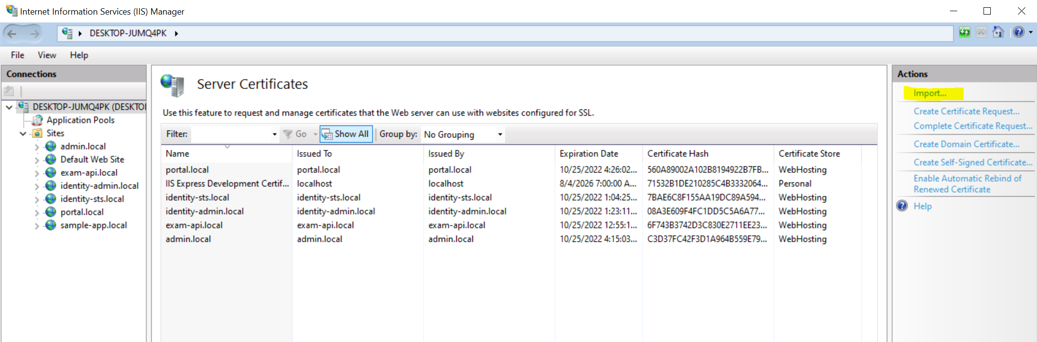 Bước 5: Import certificate vào IIS