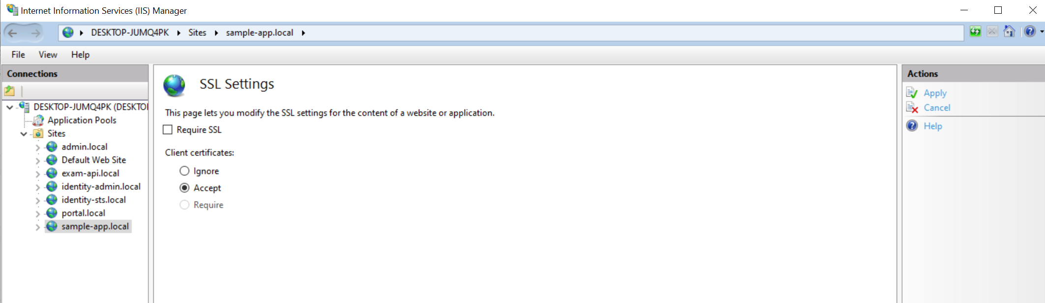 Bước 7: Config allow SSL trong IIS
